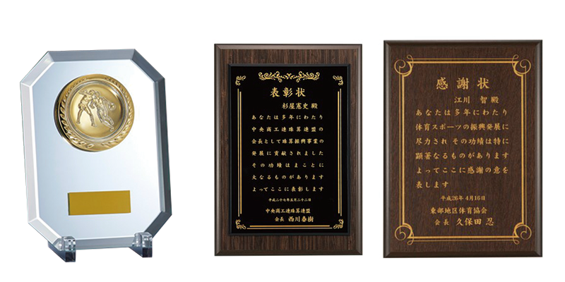 匠の技が光る、意匠を凝らしたトロフィーの数々はまるで一篇の物語を閉じ込めたかのよう。贈られる人の喜びを最大限に高めることでしょう。